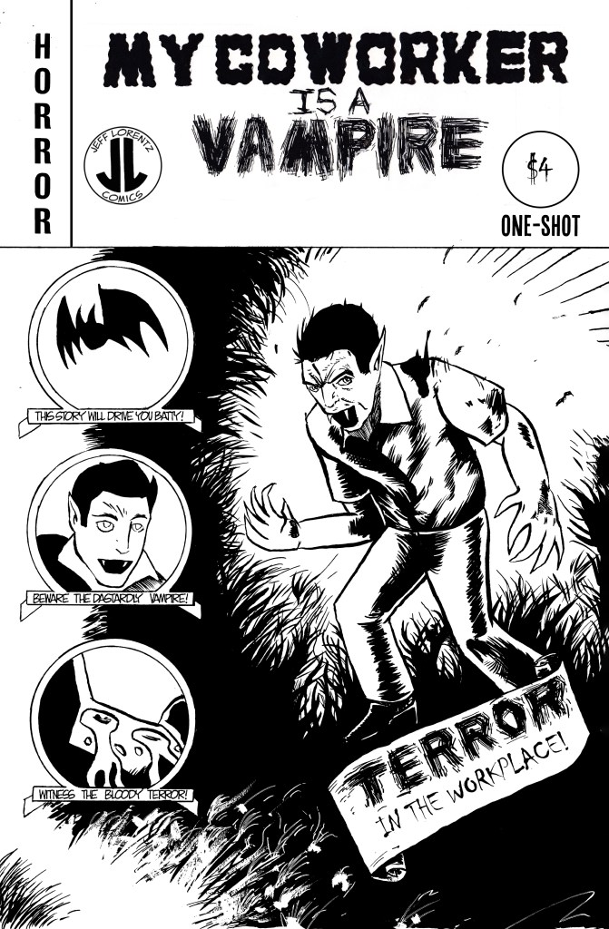 My first full-length comic – My Coworker Is A Vampire is a dark comedy horror one-shot about what happens when you find out your coworker is drinking the blood of your customers! Check out the preview below.