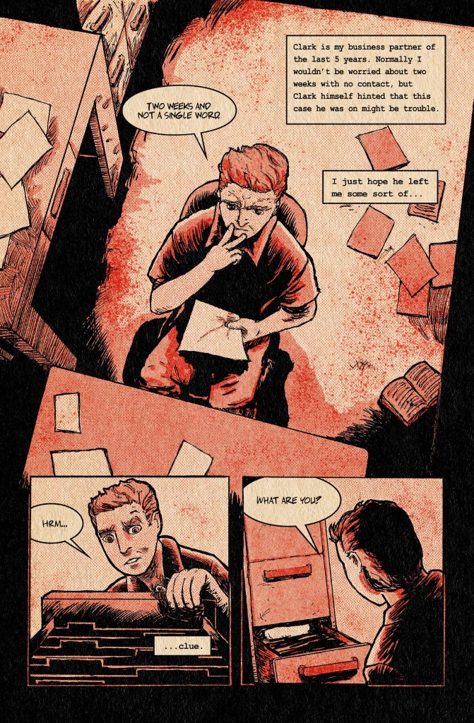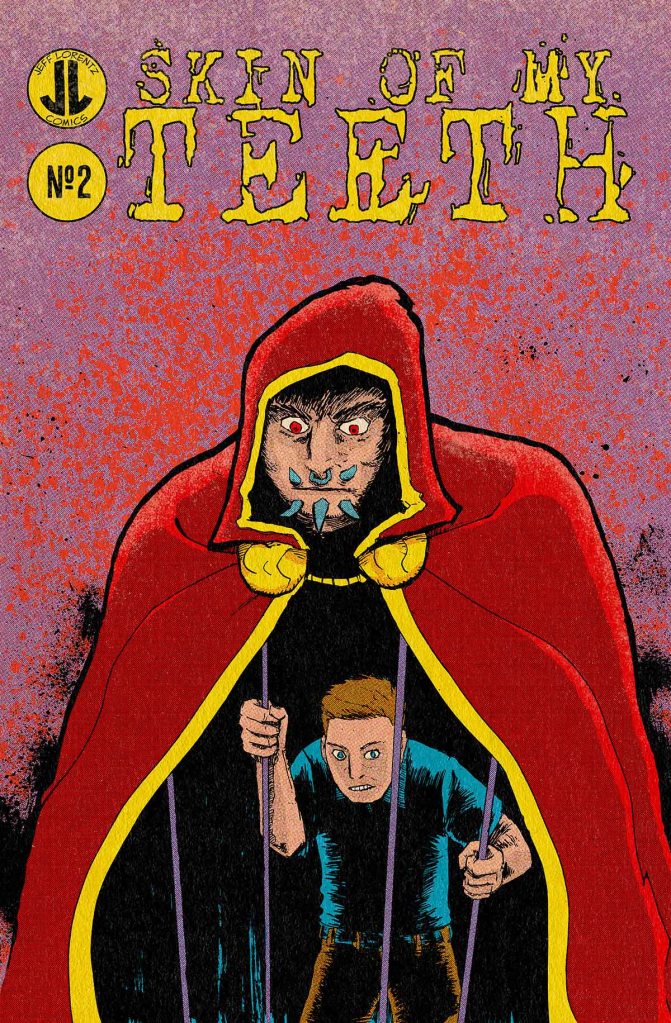 Skin Of My Teeth is my latest book, a Lovecraftian cult horror story inspired by 80’s underground comics. This is a 4 issue series about what happens when your best friend is kidnapped by a cult. The black-and-white first printings of issue one and two are gone, and now I’m presenting the series in a new vintage-styled halftoned format! Issues one and two have successfully funded on Kickstarter, and the series will continue in this improved format. Check out a preview and some other art below!